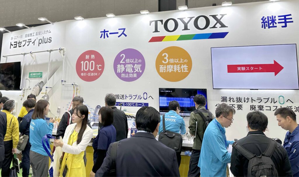 会場では、「漏れ抜けトラブル0へ」「安定搬送・分別不要・廃棄コスト低減」をテーマに